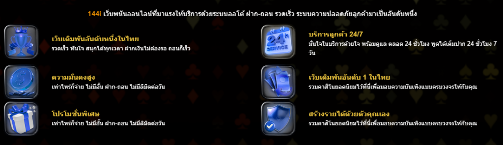หนึ่งในจุดเด่นของ 144i คือการออกแบบหน้าเว็บและระบบหลังบ้านให้เข้าใจง่าย เมนูชัดเจน ไม่ซ่อนข้อมูลสำคัญ ผู้เล่นสามารถเลือกเกม ฝาก–ถอน หรือดูโปรโมชั่นได้อย่างตรงไปตรงมา ทำให้ประสบการณ์การเล่นเป็นไปอย่างลื่นไหล ไม่สะดุด และไม่สร้างความสับสน